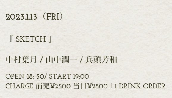 あけましておめでとうございます。遅いご挨拶ですみません。忘れがちなので、先に告知をします。---------1/13(金)【ライブタイトル】SKETCH【場所】吉祥寺曼荼羅【時間】OPEN 18...